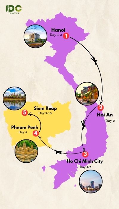 While 10 days may seem brief for an immersive exploration of Vietnam and Cambodia, it can be sufficient if you concentrate on the key highlights instead of delving deeply into every aspect.