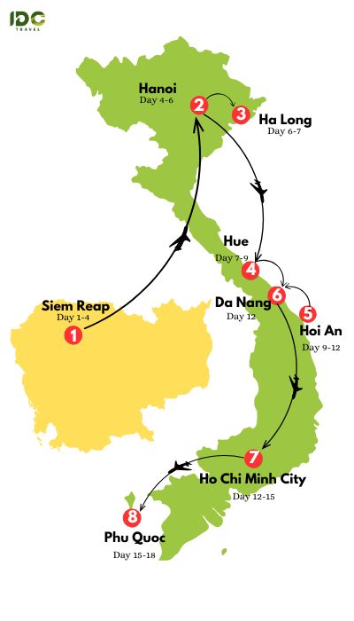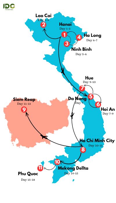 Suggested itineraries for Vietnam and Cambodia in 18 days