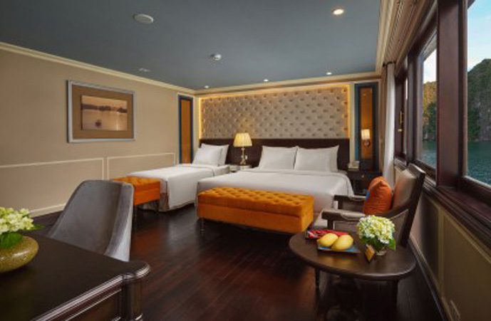 The Athena Cruise is the brand new five-star luxury cruise vessel in Ha Long Bay – Bai Tu Long Bay. Built in 2016, the Athena Cruise made her maiden voyage on July 1st, 2017. The ship has 3 decks: a lower deck with reception, cabins, and boarding area, a middle deck with cabins, an indoor restaurant and bar, and a rooftop sundeck with open bar, coffee lounge, spa and sauna. On board the Athena Cruise there are 21 high-end cabins with 5 different styles available to custom-tailor your voyage with us.
