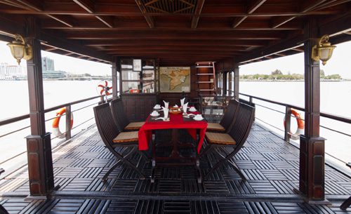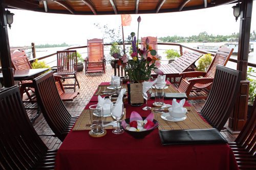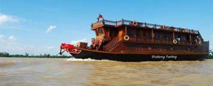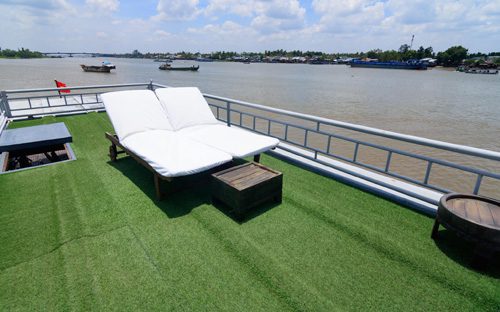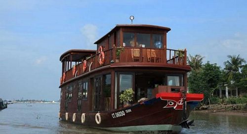 Designed as a traditional rice barge, Douce Mekong is a modern river boat entirely made of wood that sets the exploration of the Mekong Delta in an authentic and elegant setting which perfectly fits in with the natural surroundings. It combines charm and comfort for a truly quiet cruise on the winding canals of the Delta. Travelers will be greeted by a caring crew both discreet and friendly who aims at maintaining a high-quality personalised service. On board Douce Mekong there is a quiet atmosphere in which one cannot help but relax and enjoy the never-ending exquisite landscapes that unfold along the river.