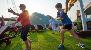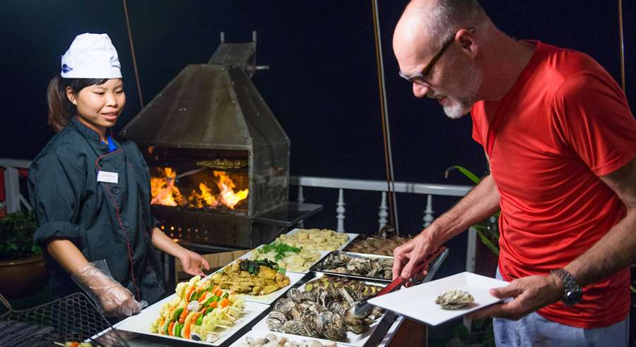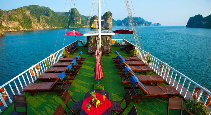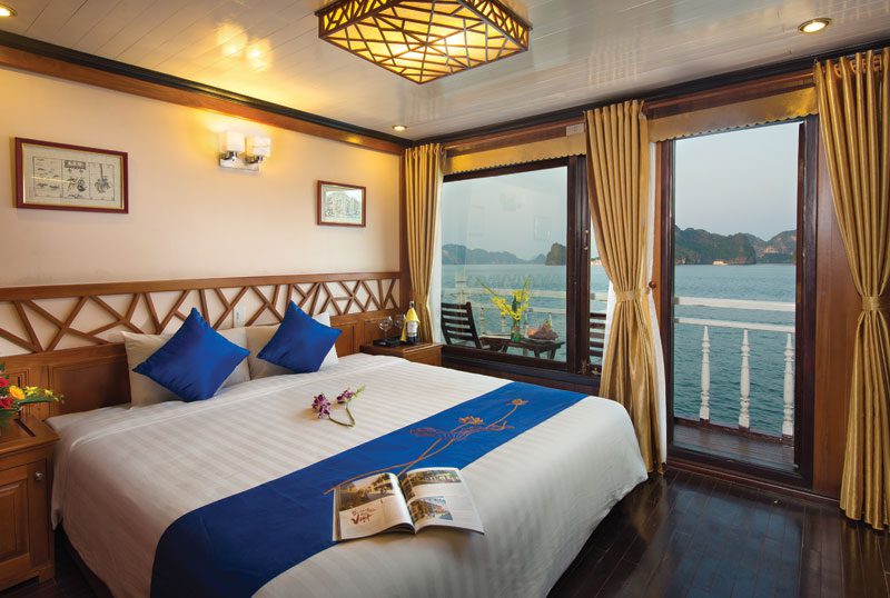 Developed by an internationally acclaimed company, Gray Line Halong Cruise is an exquisite vessel which consists of 14 wooden-interior cabins en-suite bathrooms and private balconies. Joining this cruise, guests will not only have a chance to visit emerald beaches and mesmerizing caves in Halong but also can enjoy BBQ dinner, kayaking, cooking classes or relax at the open-air bars.