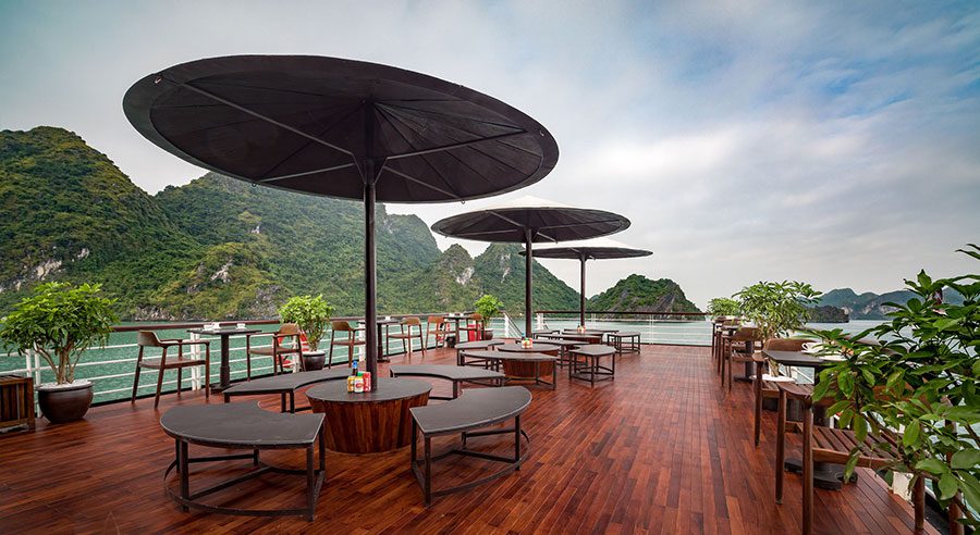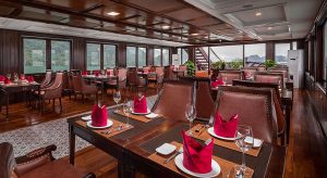 La Regina Legend Cruise offers 27 spacious cabins and exotic routes from Hai Phong to Halong Bay, Lan Ha Bay and Cat Ba Island. Not only will you enjoy the lavish atmosphere of exquisite interior design and sumptuous meals on the vessel, but you can also participate in some unforgettable activities such as sightseeing, cooking classes, kayaking, swimming, and biking around Viet Hai Fishing Village.