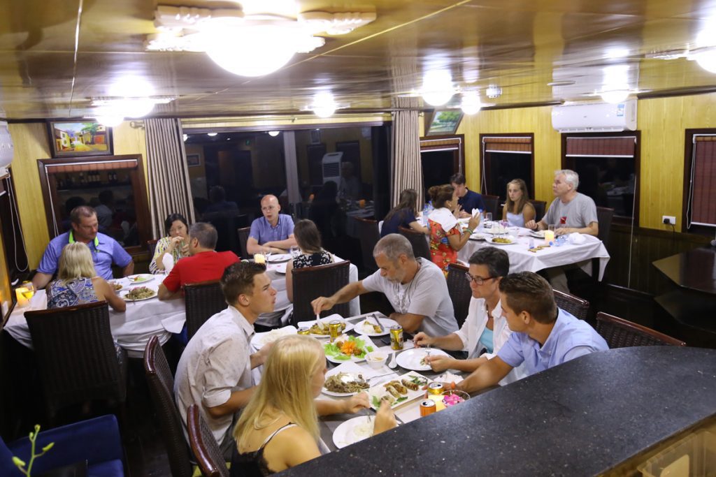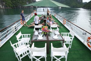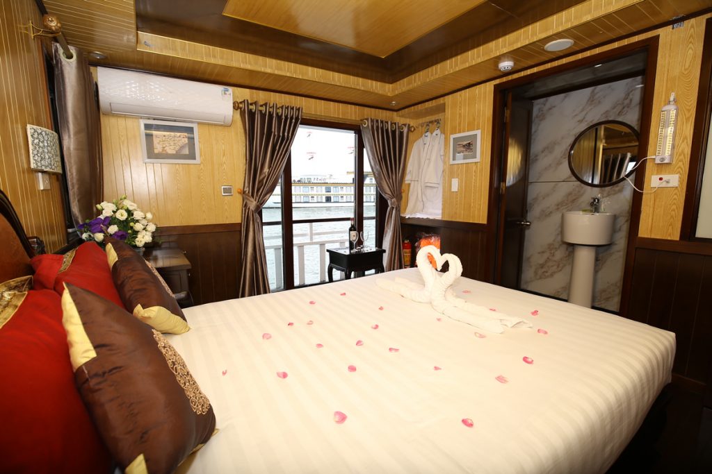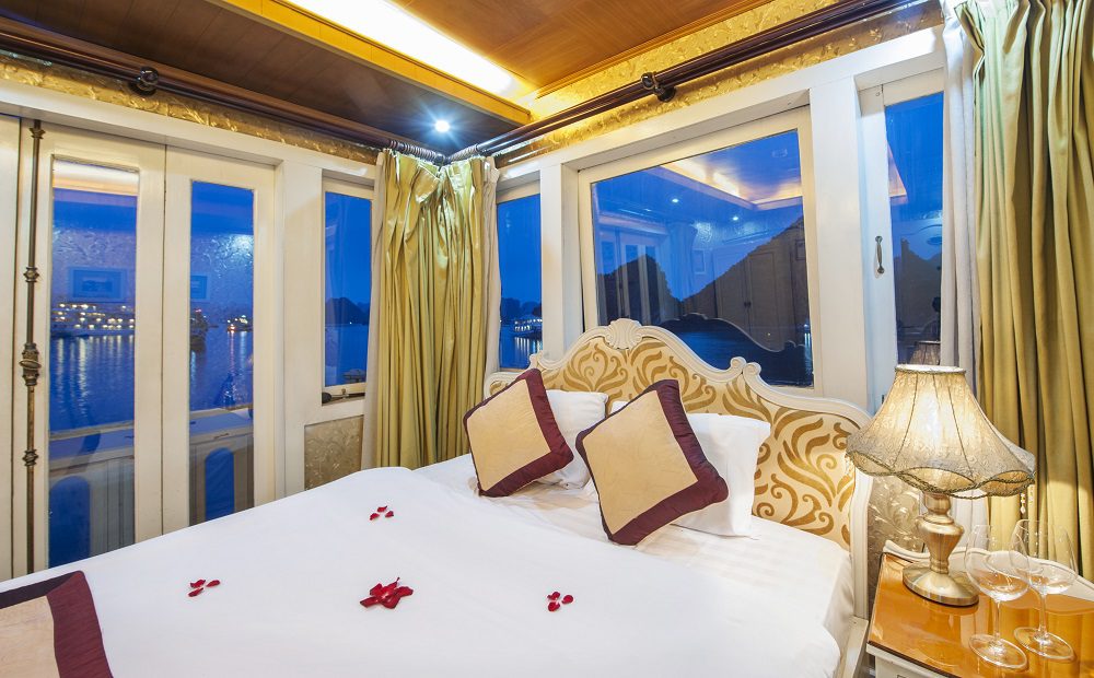 Launched in 2017, Legend White Dolphin Cruise includes 8 luxury cabins with modern facilities: air-conditioning, glass standing shower, toilet, bathroom, and comfortable Queen size bed. This vessel meets the demand of the group consisting of 2 to 8 people. You can participate in exhilarating activities such as kayaking, cooking classes, swimming and basking on the sundeck.