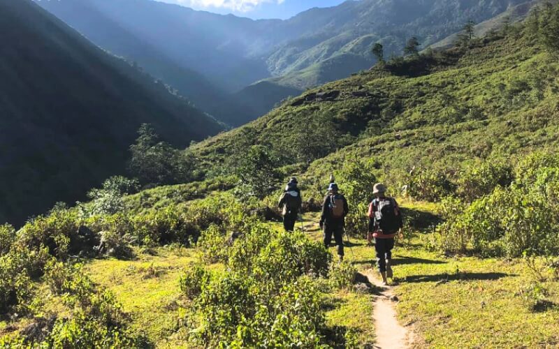 Trekking time: about 7-8 hours. The path involves many steep slopes, and a few streams, which can be slippery under the rain. You will spend the night at the shack built by the ethnic people (There are enough blankets, mats, and toilets).