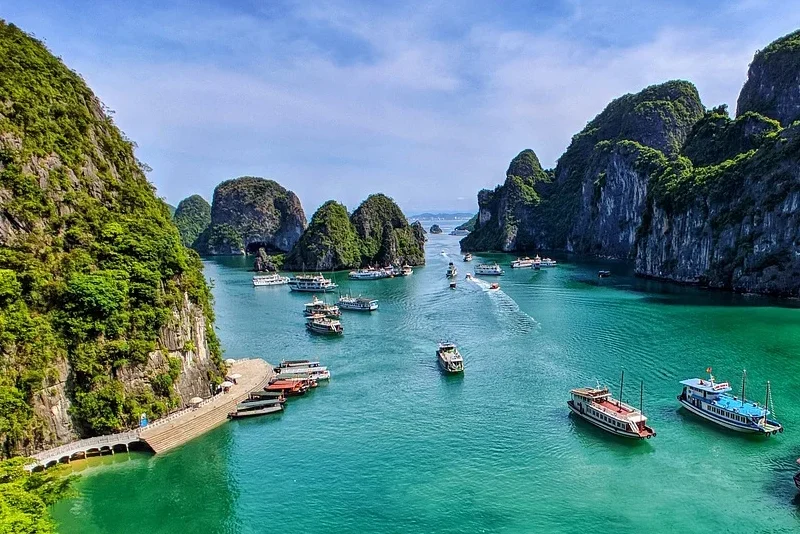 There are hundreds of limestone islands standing in the center of the sea, and they are all covered with a thick covering of green vegetation, which makes Halong bay even more gorgeous. On the boat, eat lunch, dinner, and spend the night.