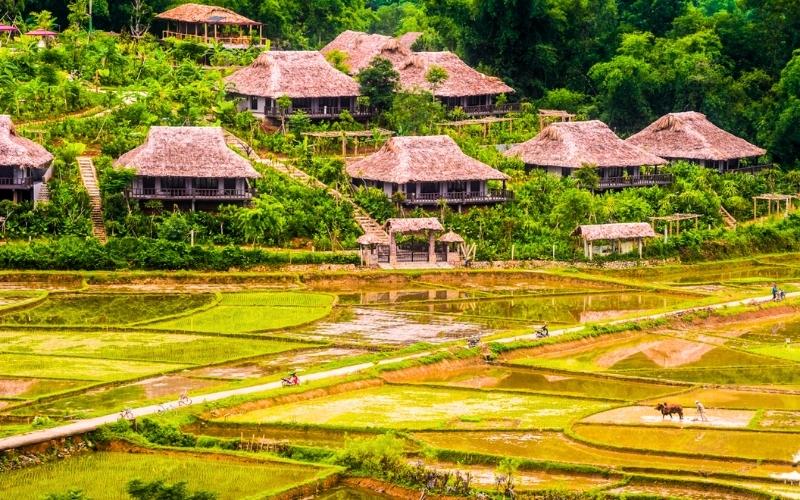 Upon arrival at Poom Coong village in Mai Chau, walk to visit this Thai ethnic village.