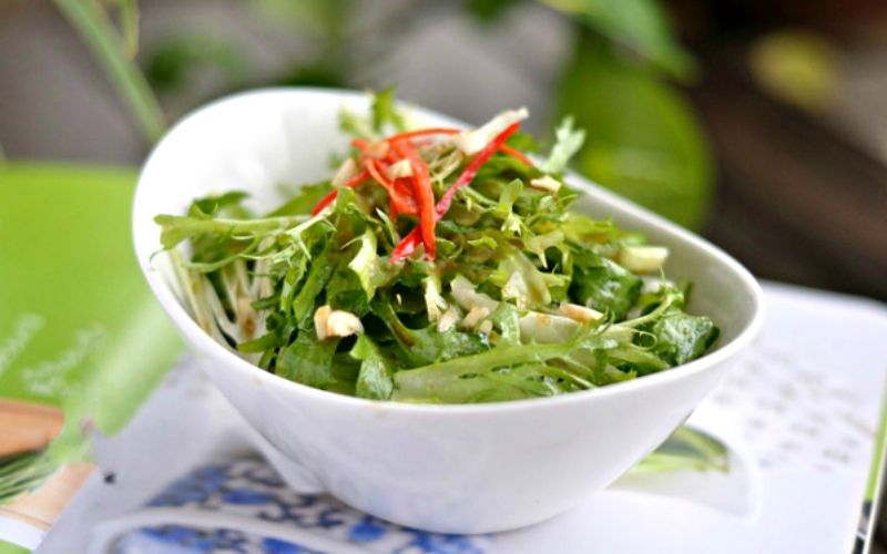 Lettuce is a wild vegetable that grows abundantly in Lai Chau’s mountainous areas. Thai ethnic people enjoy preparing food from natural ingredients, and cilantro salad is one of them. Lettuce salad, which is not only fragrant but also sweet and sour, is a dish that keeps your meal from becoming monotonous.